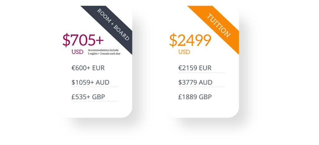 Tuition and accommodations are priced separately.